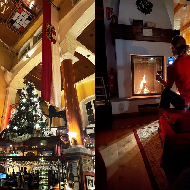 Efter lunchen är det dags att fixa sig för kvällen, lagom möra i benen efter ett par timmar på skidorna. Utanför fönstret börjar det skymma och utanför Hotel Salzburger Hof är brasorna tända och granarna pyntade. Fler och fler börjar ansluta och det bjuds på rykande varm glögg ute i kylan.