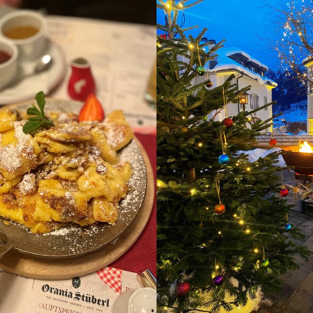 Efter ett par timmars skidåkning väntar jullunch. Vi äter på mysiga Orania Stüberl vars meny bjuder på österrikiska klassiker såsom Wienerschnitzel, Gulasch och Kaischersmarren. Jag slår till på den sistnämna, det är ju ändå julafton!