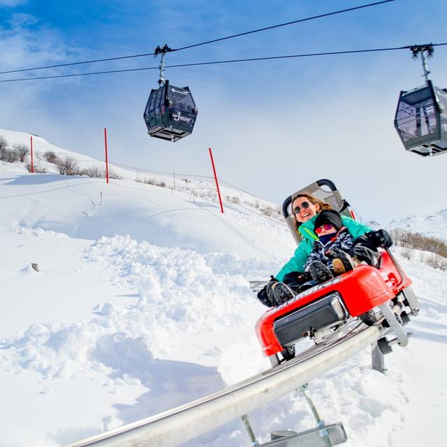 I Bruyères-distriktet i Les Menuires hittar du ”La Mine” – en 1000 meter lång rodelbana på räls. Efter en dags skidåkning kan du komma hit för att ha kul med extra fart och spänning. Du bestämmer själv hur snabbt du vill åka, och du kan köra ensam eller tillsammans med ett barn. Rodelbanan är öppen året runt.