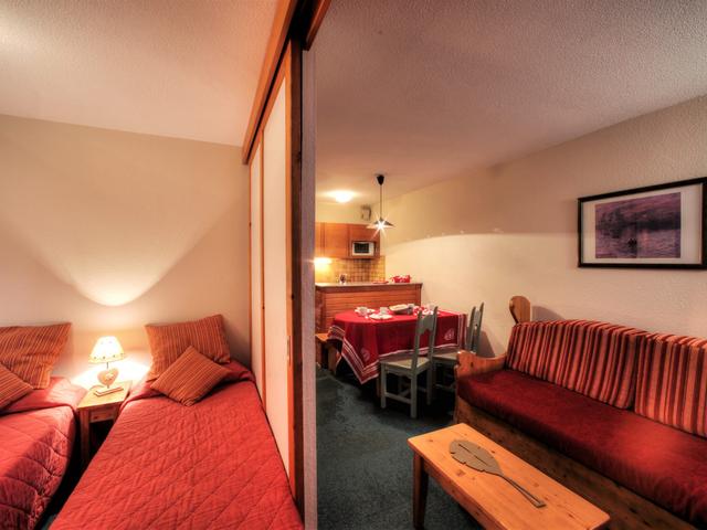 Trerumslägenhet Privilège, sovrum med två enkelsängar, sovalkov med våningssäng, vardagsrum med bäddsoffa, pentry, bad/dusch, separat WC och balkong.