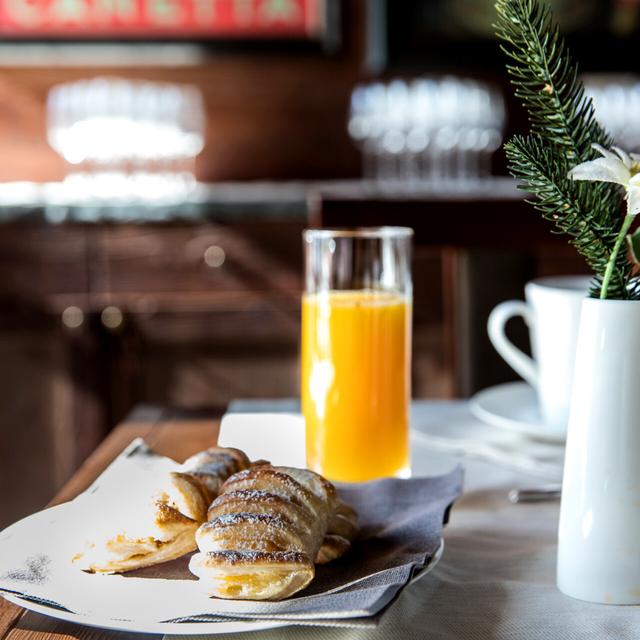 Menyn är noggrant komponerad med säsongsbetonade r åvaror med en stark lokal förankring till Aosta- och Piemonteregionen, precis som vinlistan. För hotellets gäster som bokat halvpension så serveras 6 stycken goda fyrarättersmiddagar. De inleds med italiensk buffé, sedan fritt val av tre varmrätter och som avslutning serveras ostbuffé och dessert.