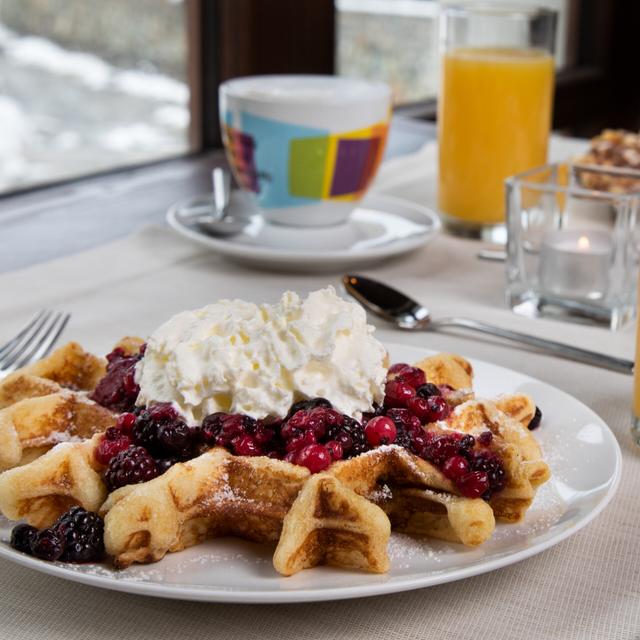 Frukostbuffén innehåller allt man kan önska sig - missa inte heller de välkända frukostvåfflorna!