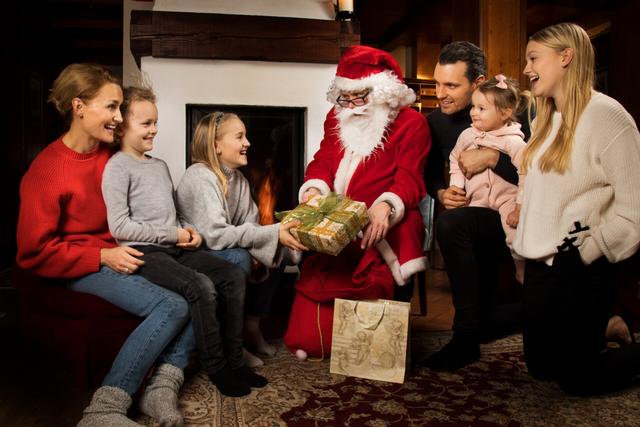 Alla barn får julklapp av tomten på julafton
