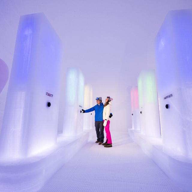 Ice Camp Kitzsteinhorn ligger på toppen av glaciären, hela 2600 meter över havet, och bjuder på imponerande iskonst och fantastisk utsikt. Tre mäktiga igloos rymmer konstverk i snö och is, med ljud- och ljusspel som förflyttar besökaren till en annan värld. Utanför finns en stor solterrass där man kan ta en paus och koppla av med musik, drinkar och panoramautsikt över Alperna. Ice Camp Kitzsteinhorn går att nå på skidor, direkt från pisten.